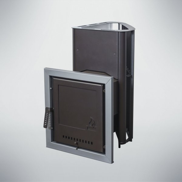 Печь предназначена для помещений, в которых имеет значение каждый сантиметр площади. Данная печь аккуратно устанавливается в углу парной и занимает немного места. Печь является конвекционно-аккумулирующей. Две стороны печи имеют конвекционный кожух, третья стенка оснащена сеткой для закладки камнем, который впитывает в себя тепло, плавно отдает его в помещение, при этом создает приятный микроклимат вокруг печи.