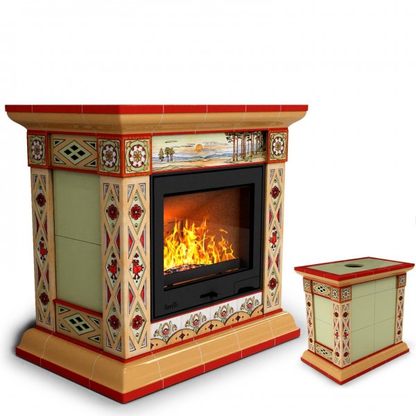 Изразцовый камин Билибин центральный Лето — камин в стиле «русский модерн» производства КимрПечь (г.Кимры).