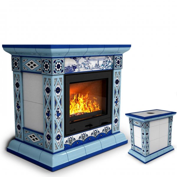 Изразцовый камин Билибин центральный Зима — камин в стиле «русский модерн» производства КимрПечь (г.Кимры).