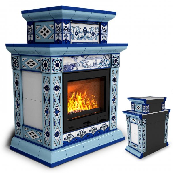 Керамическая печь Билибин пристенный двухъярусный Зима — камин в стиле «русский модерн» производства КимрПечь (г.Кимры).