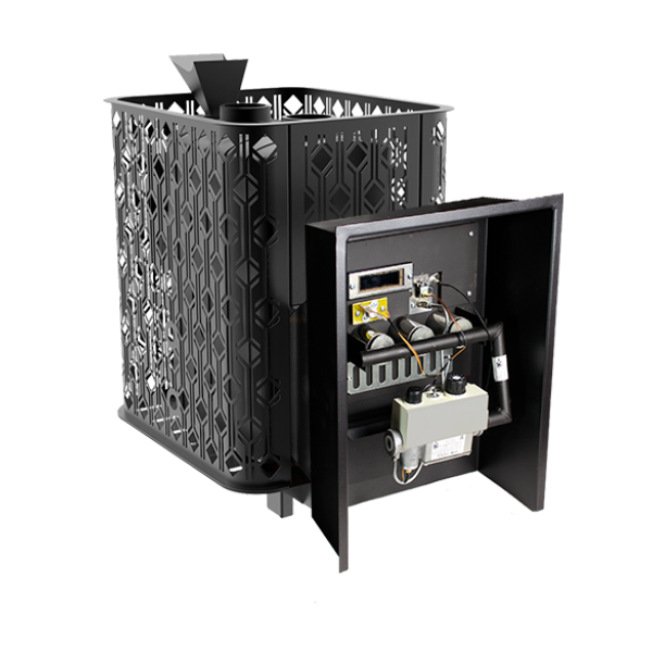 Сочетание дизайна, мощи, универсальности и качества. Печь имеет закрытую каменку с воронкой клапаном для поддачи воды на самые раскалённые камни, уложенные в Закрытой каменке! Оригинальная безрамочная дверца с Огромным стеклом подчёркивают стилистику печи!