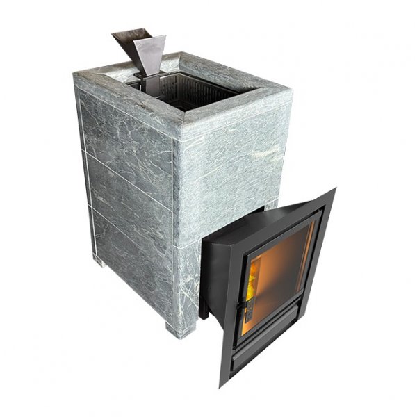 Сочетание дизайна, мощи, универсальности и качества. Печь имеет закрытую каменку с воронкой клапаном для поддачи воды на самые раскалённые камни, уложенные в Закрытой каменке! Оригинальная безрамочная дверца с Огромным стеклом подчёркивают стилистику печи!