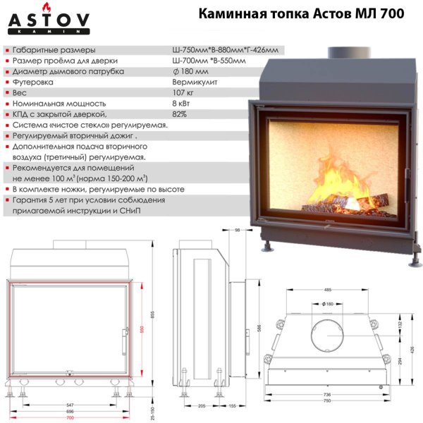 Дровяная топка Астов МЛ 700