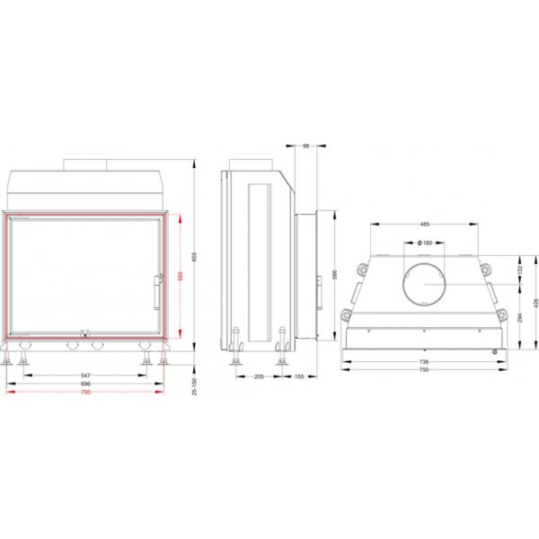 К внешнему, выполненному из котловой стали, приварены п-образные профили (рёбра жёсткости) таким способом, что в металле, во время разогрева, не возникает деформации (предварительно напряжённая конструкция). Это обеспечивает неизменность формы, эффективность теплопередачи и долговечность. Футеровка формирует структуру, несущую на себе всю термическую нагрузку. В каминной топке МЛ 700 установлена футеровка вермикулит, обладающая высокой теплоотражающей способностью, что значительно увеличивает КПД и коэффициент сгорания. Он обладает низкой теплопроводностью, минерал способен усилить огнестойкость других печных материалов, имеет высокие показатели огнеупорности, является химически инертным и теплостойким веществом, обладает высокими изоляционными свойствами. Кроме того, футеровка вермикулитом имеет эстетически приятный, монолитный вид. Бесколосниковая система улучшает сгорание и увеличивает КПД