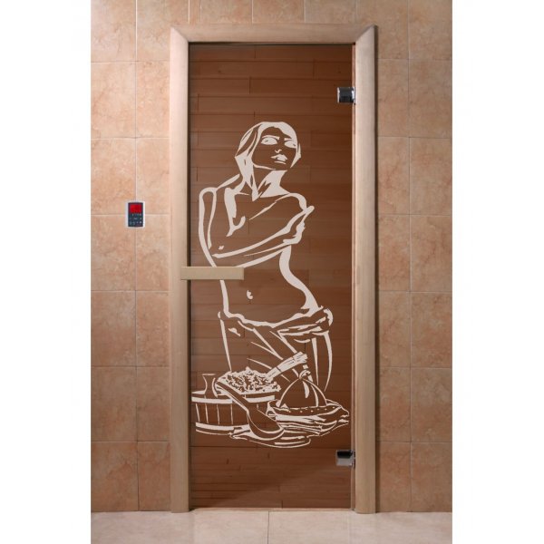 Стеклянная дверь для бани и сауны Искушение бронза 1900*700, 6мм, 2 петли