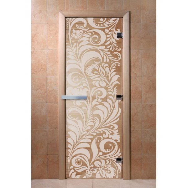 Стеклянная дверь для бани и сауны Хохлома прозрачная