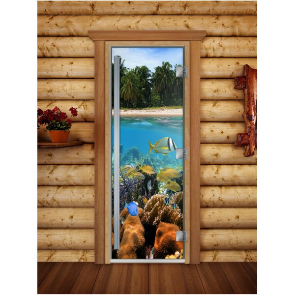 Стеклянная дверь для бани и сауны Престиж фотопечать А067