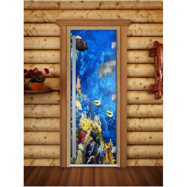 Стеклянная дверь для бани и сауны Престиж фотопечать А068
