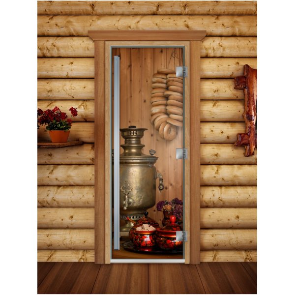 Стеклянная дверь для бани и сауны Престиж фотопечать А076