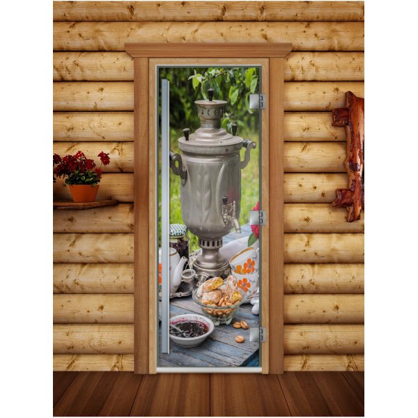 Стеклянная дверь для бани и сауны Престиж фотопечать А077