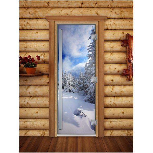 Стеклянная дверь для бани и сауны Престиж фотопечать А081