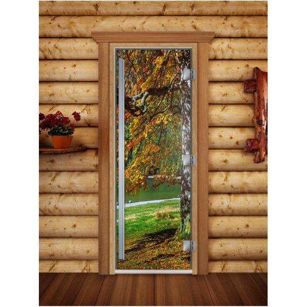 Стеклянная дверь для бани и сауны Престиж фотопечать А089