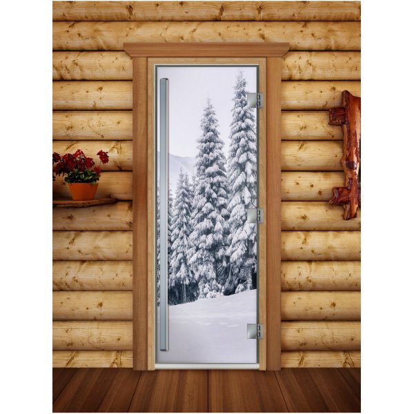 Стеклянная дверь для бани и сауны Престиж фотопечать А091