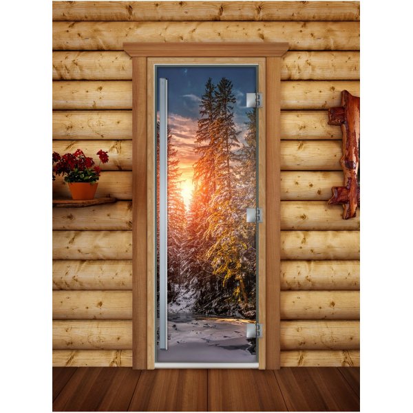 Стеклянная дверь для бани и сауны Престиж фотопечать А093