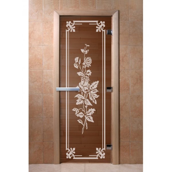 Стеклянная дверь для бани и сауны Розы бронза 1900*700, 6мм, 2 петли