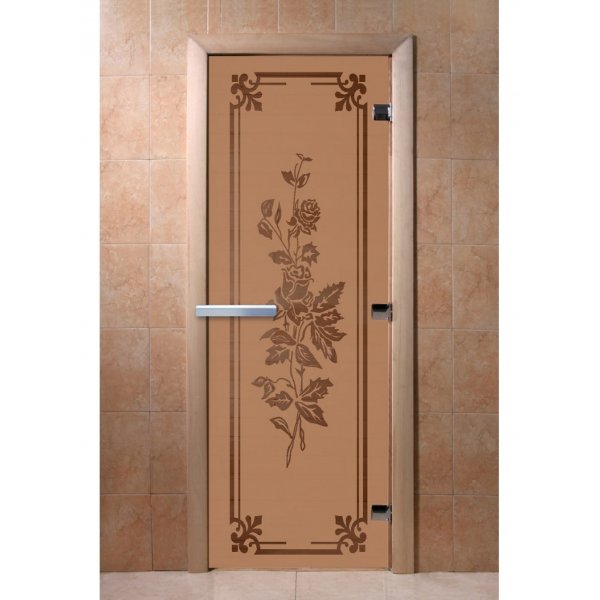 Стеклянная дверь для бани и сауны Розы бронза матовая