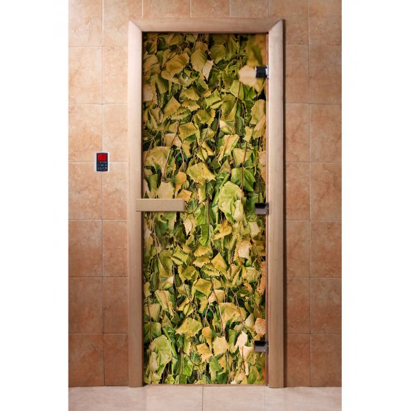Стеклянная дверь для бани и сауны с фотопечатью А001