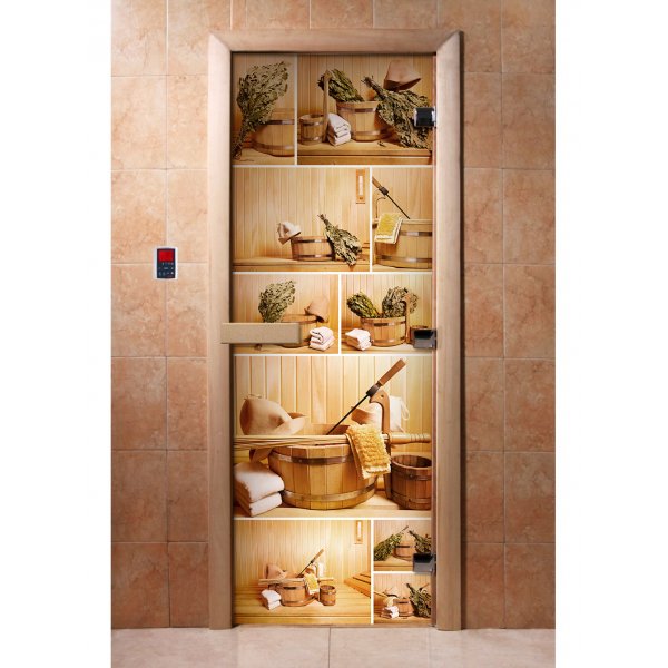 Стеклянная дверь для бани и сауны с фотопечатью А005