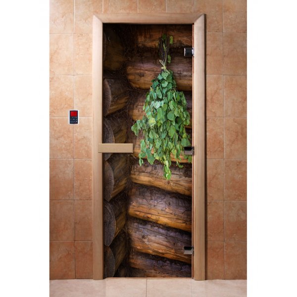 Стеклянная дверь для бани и сауны с фотопечатью А007