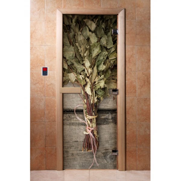 Стеклянная дверь для бани и сауны с фотопечатью А011