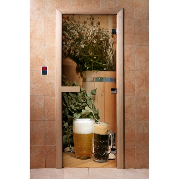Стеклянная дверь для бани и сауны с фотопечатью А017