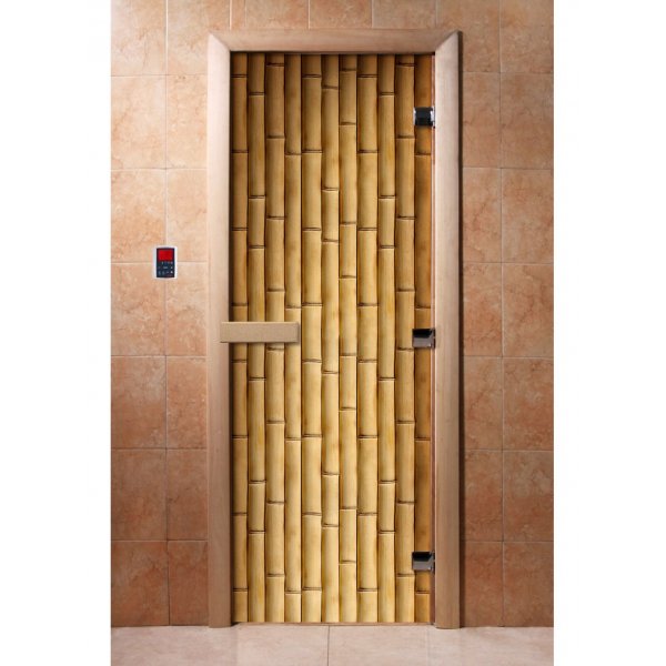 Стеклянная дверь для бани и сауны с фотопечатью А019