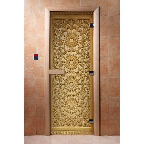 Стеклянная дверь для бани и сауны с фотопечатью А021