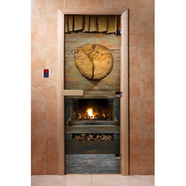 Стеклянная дверь для бани и сауны с фотопечатью А038