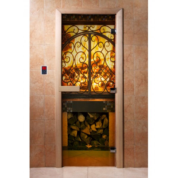 Стеклянная дверь для бани и сауны с фотопечатью А041