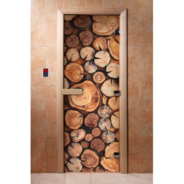 Стеклянная дверь для бани и сауны с фотопечатью А044