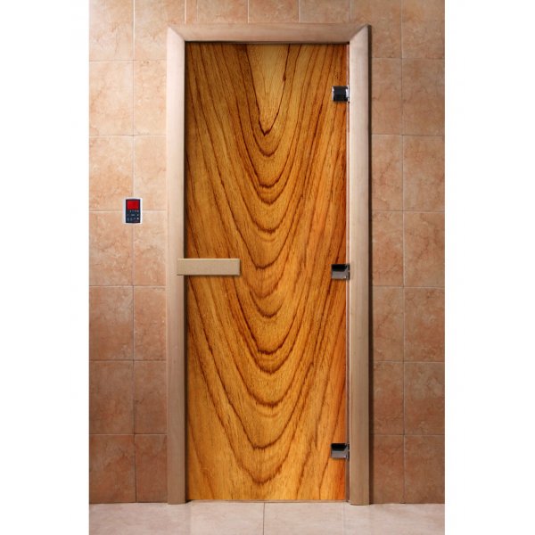 Стеклянная дверь для бани и сауны с фотопечатью А050