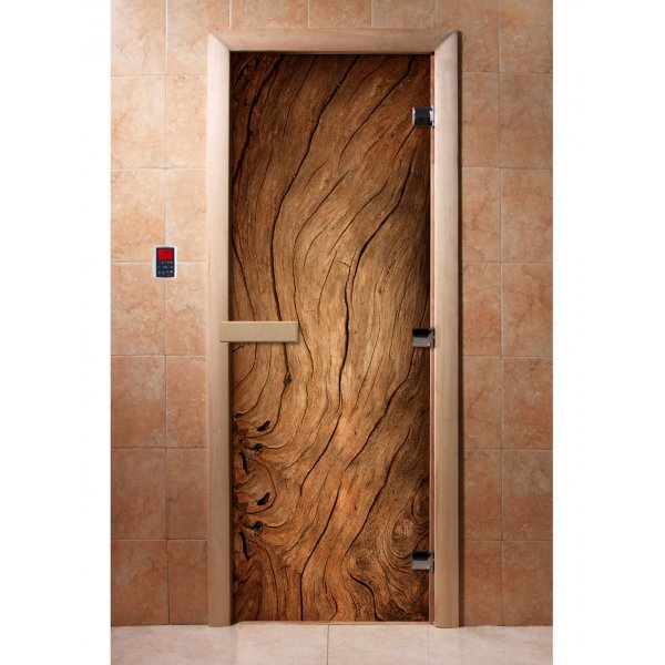 Стеклянная дверь для бани и сауны с фотопечатью А052