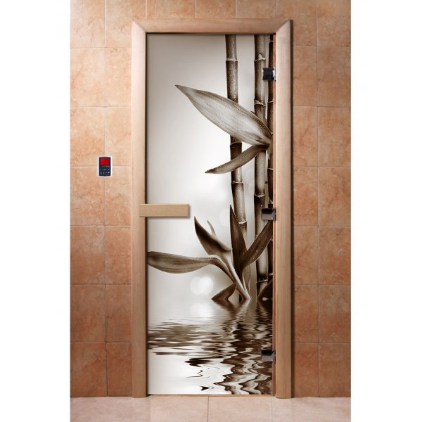 Стеклянная дверь для бани и сауны с фотопечатью А057