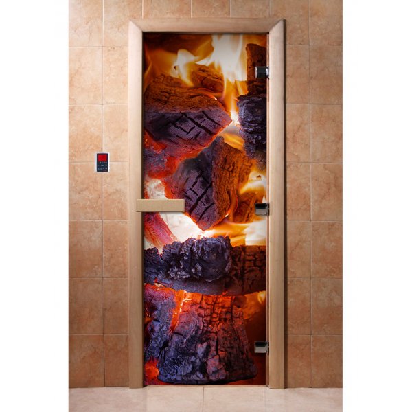 Стеклянная дверь для бани и сауны с фотопечатью А060
