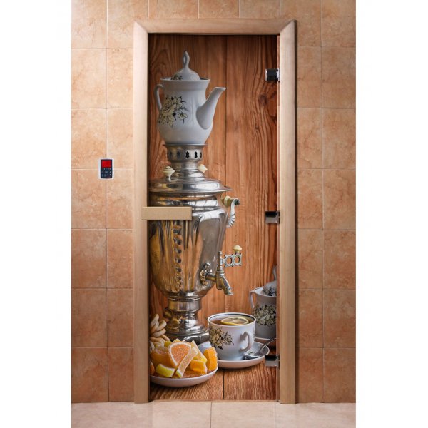 Стеклянная дверь для бани и сауны с фотопечатью А074