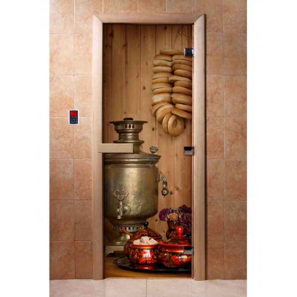 Стеклянная дверь для бани и сауны с фотопечатью А076