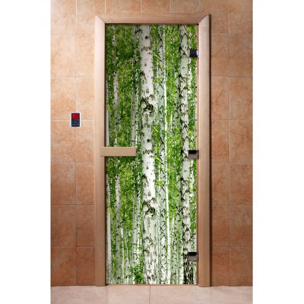 Стеклянная дверь для бани и сауны с фотопечатью А084