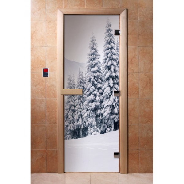 Стеклянная дверь для бани и сауны с фотопечатью А091