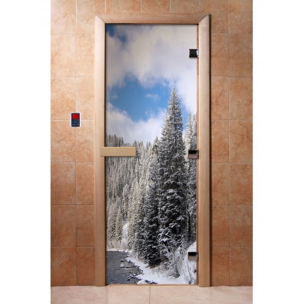 Стеклянная дверь для бани и сауны с фотопечатью А095