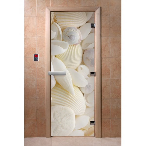 Стеклянная дверь для бани и сауны с фотопечатью А099