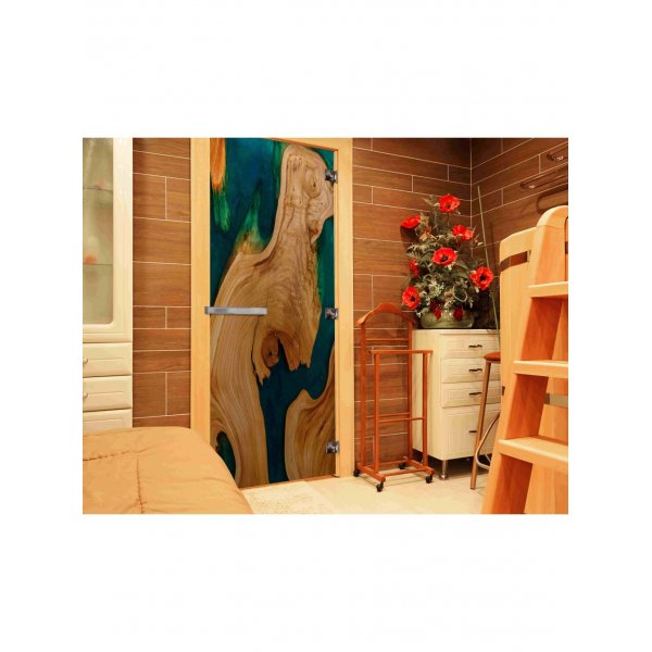Стеклянная дверь для бани и сауны с фотопечатью (СЛЭБ-01)