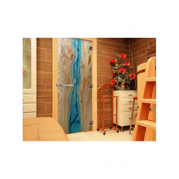 Стеклянная дверь для бани и сауны с фотопечатью (СЛЭБ-04)