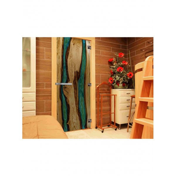 Стеклянная дверь для бани и сауны с фотопечатью (СЛЭБ-11)