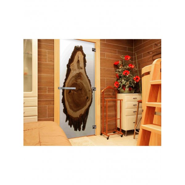 Стеклянная дверь для бани и сауны с фотопечатью (СЛЭБ-16)