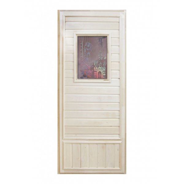 Дверь Вагонка эконом со стеклом девушка в баньке