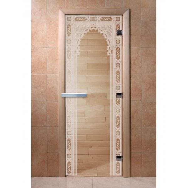 Стеклянная дверь для бани и сауны Восточная арка прозрачная