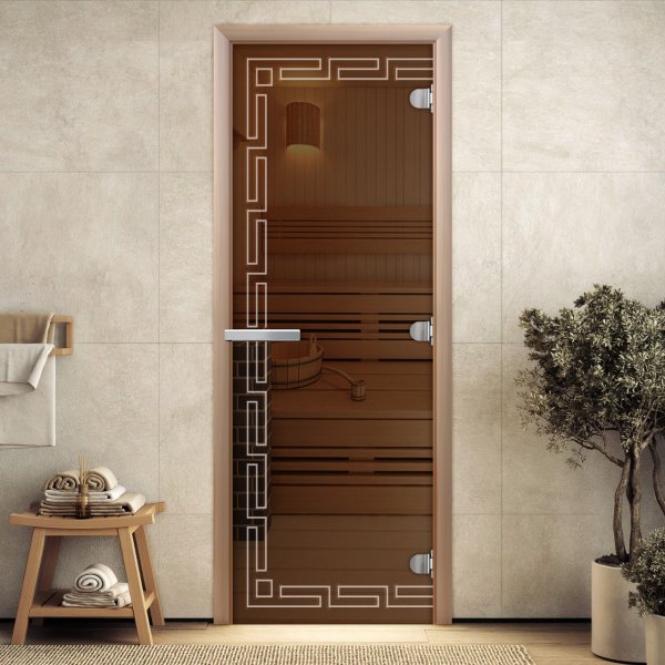Стеклянная дверь Греция бронза от DoorWood это идеальное сочетание классического дизайна и передовых технологий производства. Изготовленная из прочного закалённого стекла толщиной 8 мм, эта дверь не только гарантирует безопасность и долговечность, но и становится стильным акцентом в интерьере вашей бани или сауны. Уникальный рисунок с греческим орнаментом придаёт изделию изысканную текстуру и глубину, которая подчеркнёт индивидуальность любого помещения.