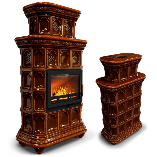 Изразцовый камин Истра центральный двухъярусный Каштан украсит любой интерьер.