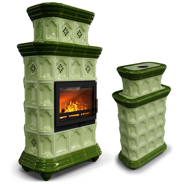 Изразцовый камин Истра центральный двухъярусный Олива украсит любой интерьер.