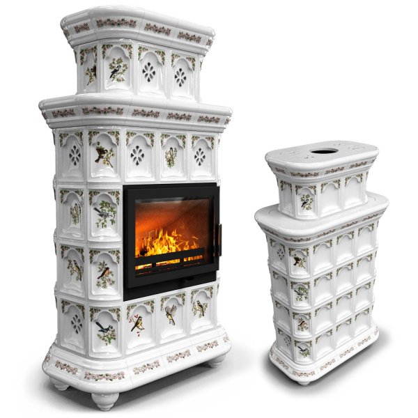 Изразцовый камин Истра центральный двухъярусный Птицы украсит любой интерьер.